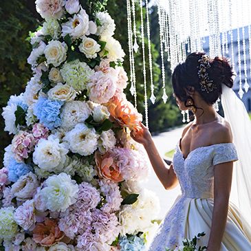 Нежные цветочные колонны, которые, поднимаясь, образуют изящную арку, становятся символом перехода – своеобразным порталом в новую жизнь для счастливых молодоженов Даукена и Алтынай.