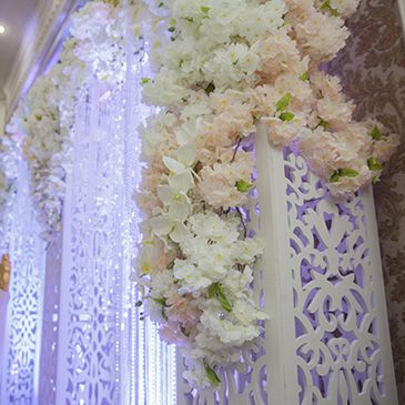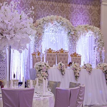 Свадьбы, что совершаются зимой, бывают особенно волшебны. Так, банкетный зал «Поэзия» превращается в сказочный лес с белыми деревьями. Хрустальные нити, переливы кристаллов, белоснежные цветы, горящие свечи в канделябрах – декор выглядит гармоничным и добавляет торжественности.