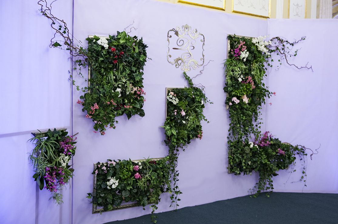Настоящий праздник жизни, праздник лета, молодости и цветения. Каскады свежей зелени, фитодизайн в картинах на фотозоне. Тема каскадов зелени с добавлением хрусталя продолжается в зоне для молодоженов. И, конечно же, яркая цветочная палитра присутствует в композициях, что украшают гостевые столы.