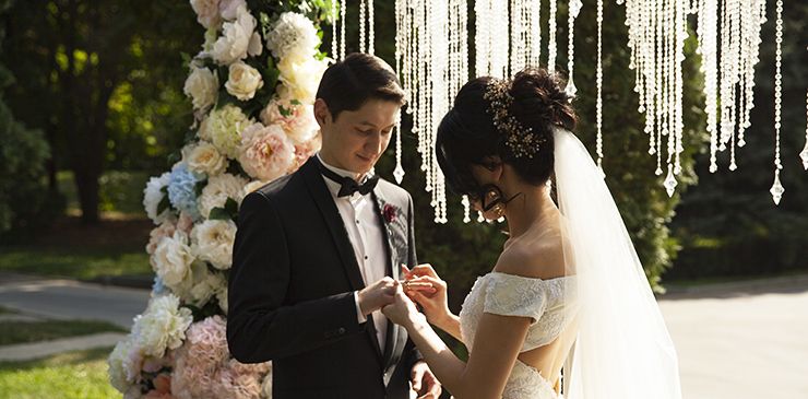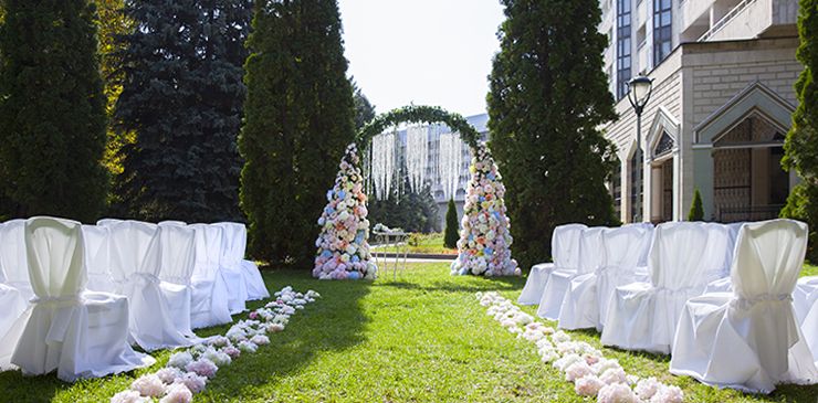 Нежные цветочные колонны, которые, поднимаясь, образуют изящную арку, становятся символом перехода – своеобразным порталом в новую жизнь для счастливых молодоженов Даукена и Алтынай.