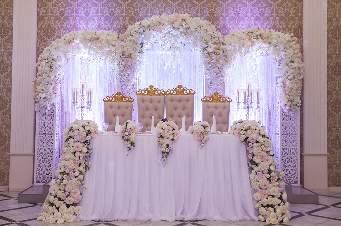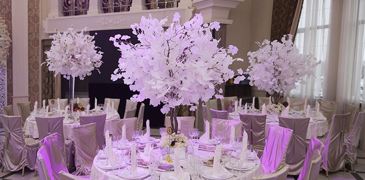 Свадьбы, что совершаются зимой, бывают особенно волшебны. Так, банкетный зал «Поэзия» превращается в сказочный лес с белыми деревьями. Хрустальные нити, переливы кристаллов, белоснежные цветы, горящие свечи в канделябрах – декор выглядит гармоничным и добавляет торжественности.